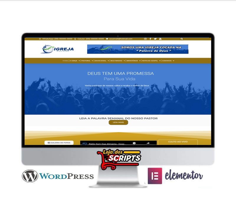 Site para Igrejas Evangélicas super completo com painel administrativo bem fácil e bem simples, 100% responsivo criado em plataforma WordPress modificado, sistema Elementor com arrasta e solta, acompanha vídeo aula de instalação passo a passo, e ainda daremos total suporte durante a instalação, agora você vai ter o site de sua igreja de forma bem simples e bem profissional, A entrega do script é automática, comprou ja baixa na hora pois nosso sistema de entrega é automático, bastando apenas entrar em sua conta em nossa loja e ja baixar o arquivo e as video aulas de instalação.